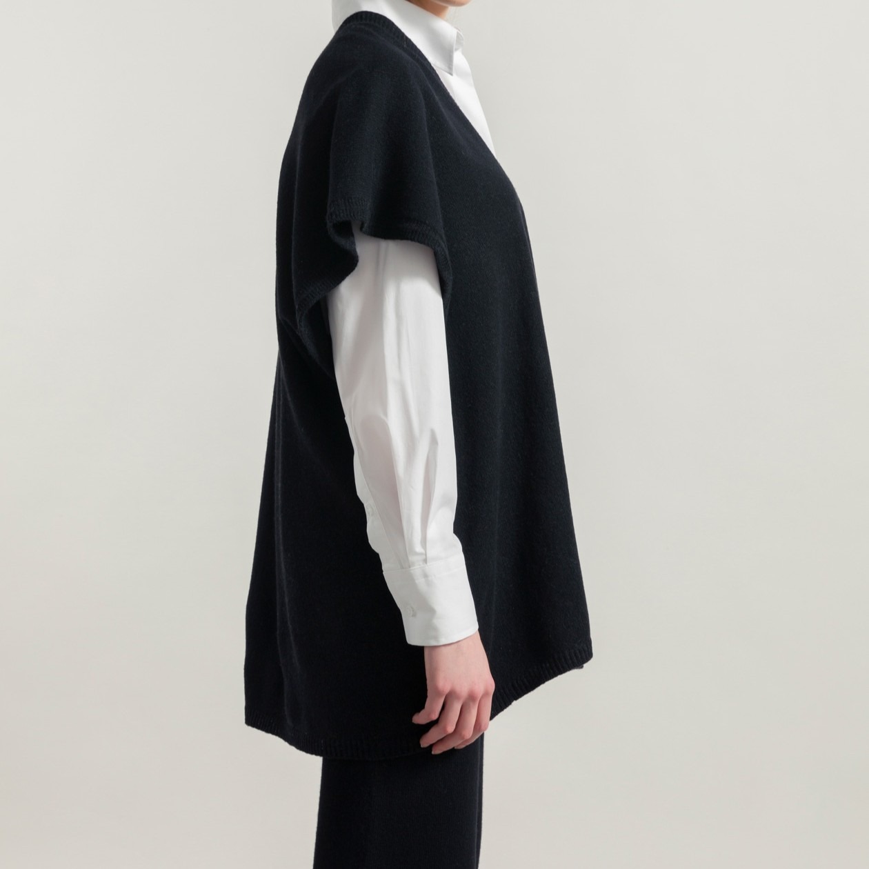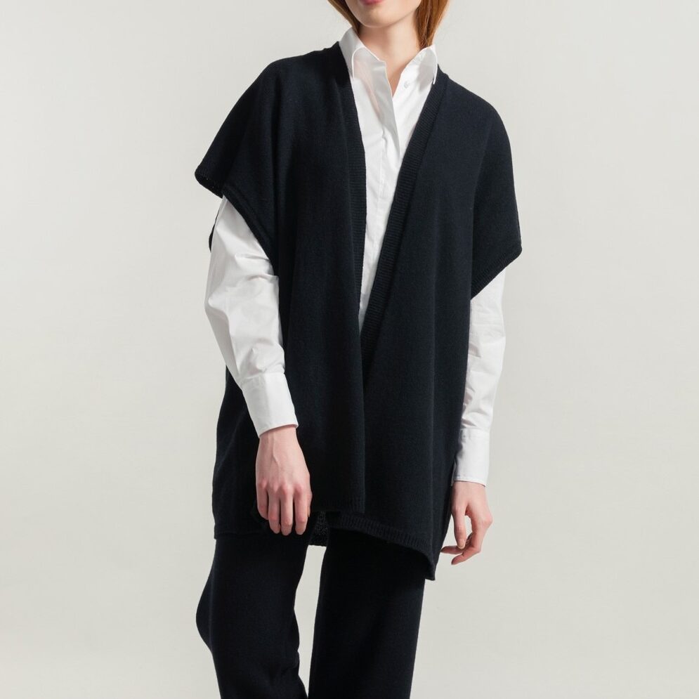 Un cardigan comodo, a casacca, in cashmere rigenerato