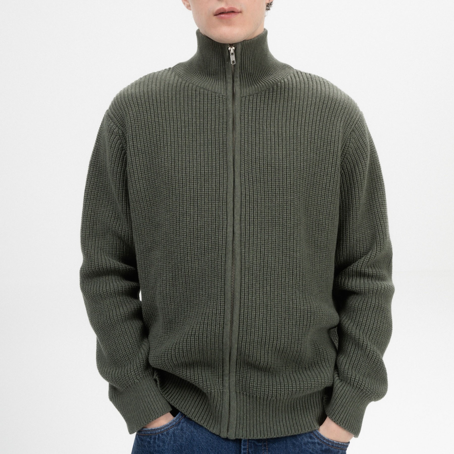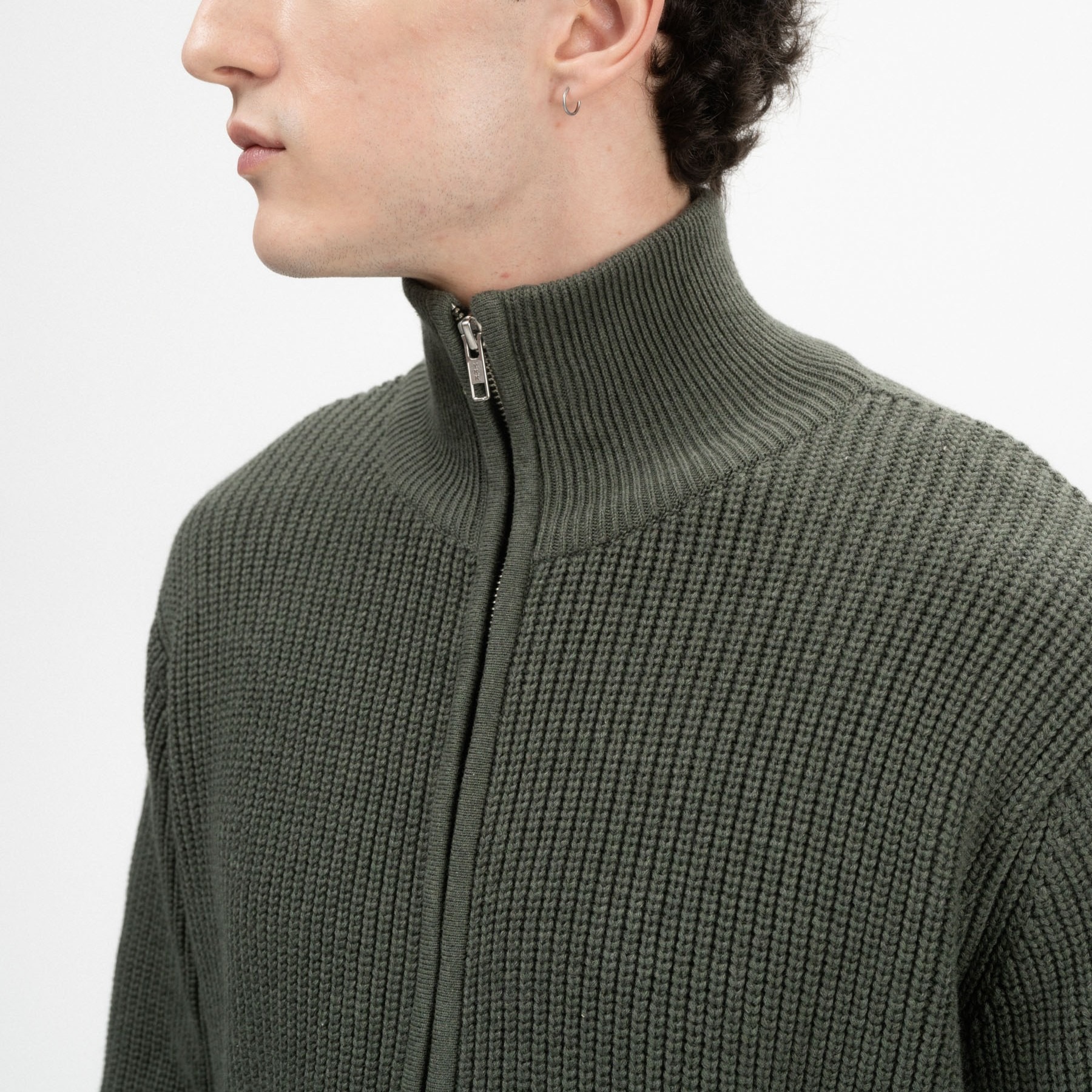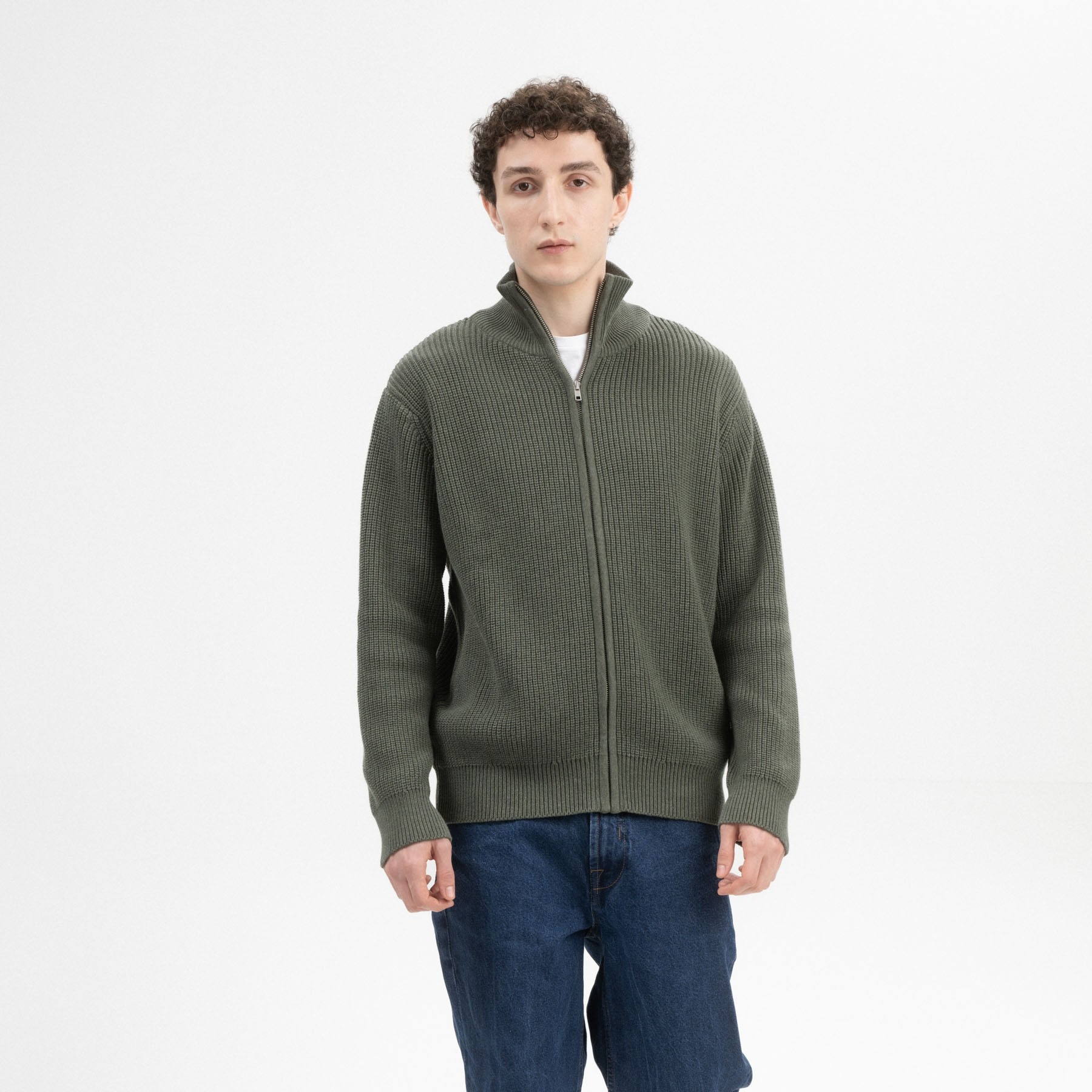 Morbido cardigan con cerniera da uomo, realizzato in 100% cotone biologico. Versatile e comodo, potrai utilizzarlo sopra una semplice maglietta. Il colletto alto ti terrà ben al caldo! Il cardigan presenta inoltre una particolare lavorazione a costine con cotone pettinato, che dona maggiore durevolezza nel tempo.