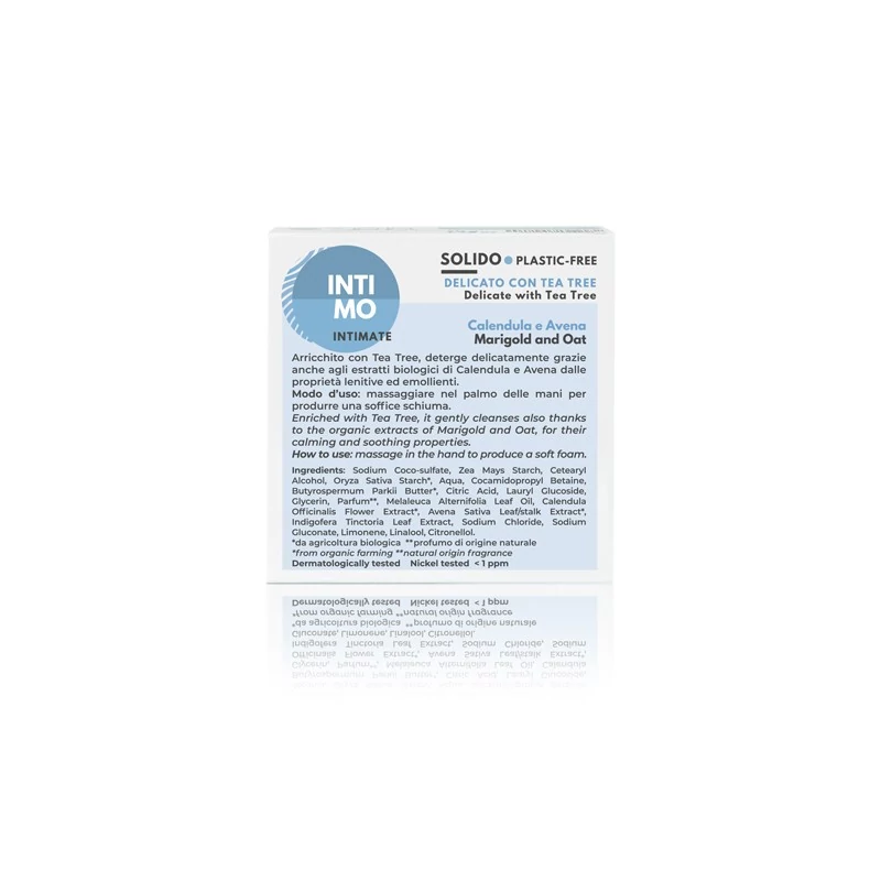 Detergente Intimo Solido che deterge delicatamente e aiuta a lenire le irritazioni, grazie agli estratti di Calendula, Avena e Tea Tree.