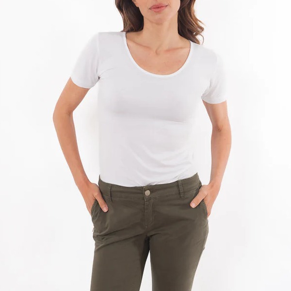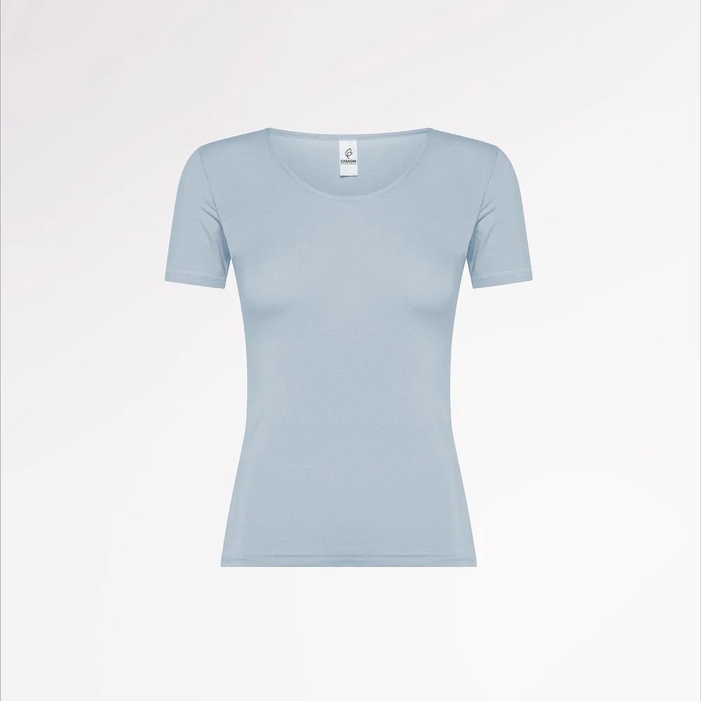 La maglia girocollo a maniche corte in fibra di faggio è il perfetto sotto giacca per qualsiasi look, può essere utilizzata anche come abbigliamento intimo.
