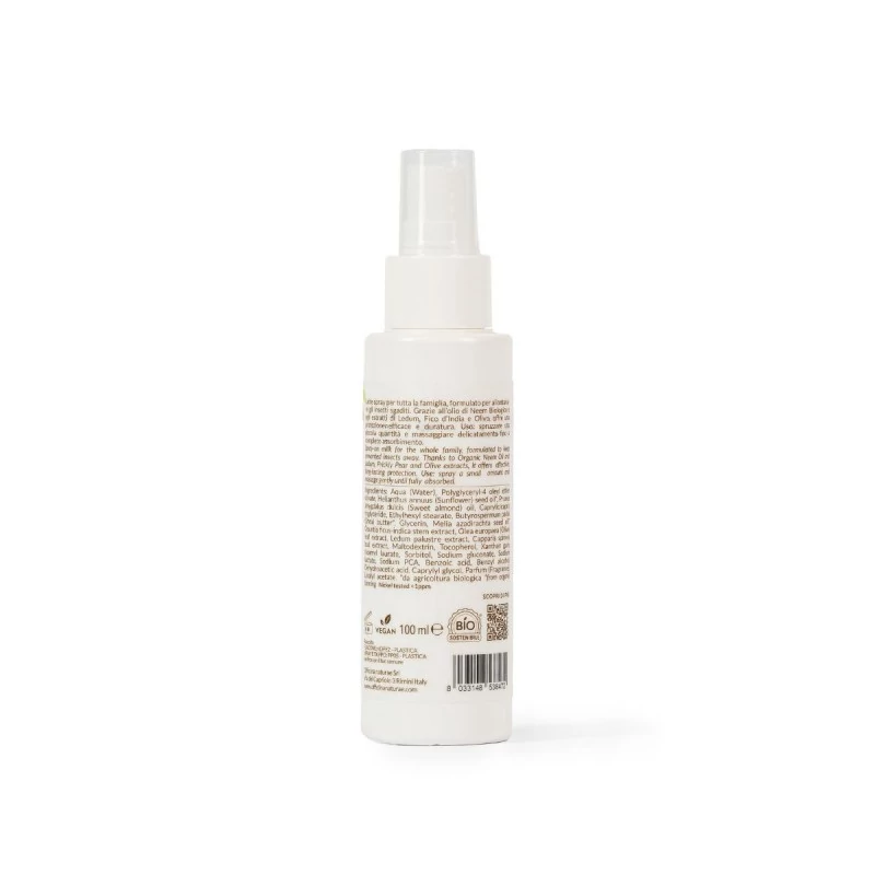 Il latte spray protettivo insetti adulti e bambin@, protegge il derma dalle punture con una formula leggera e non untuosa, arricchita con olio di Neem biologico ed estratto di Ledum Palustre. Respinge naturalmente gli insetti, mentre burro di Karité e olio di Mandorle Dolci idratano e proteggono la pelle.