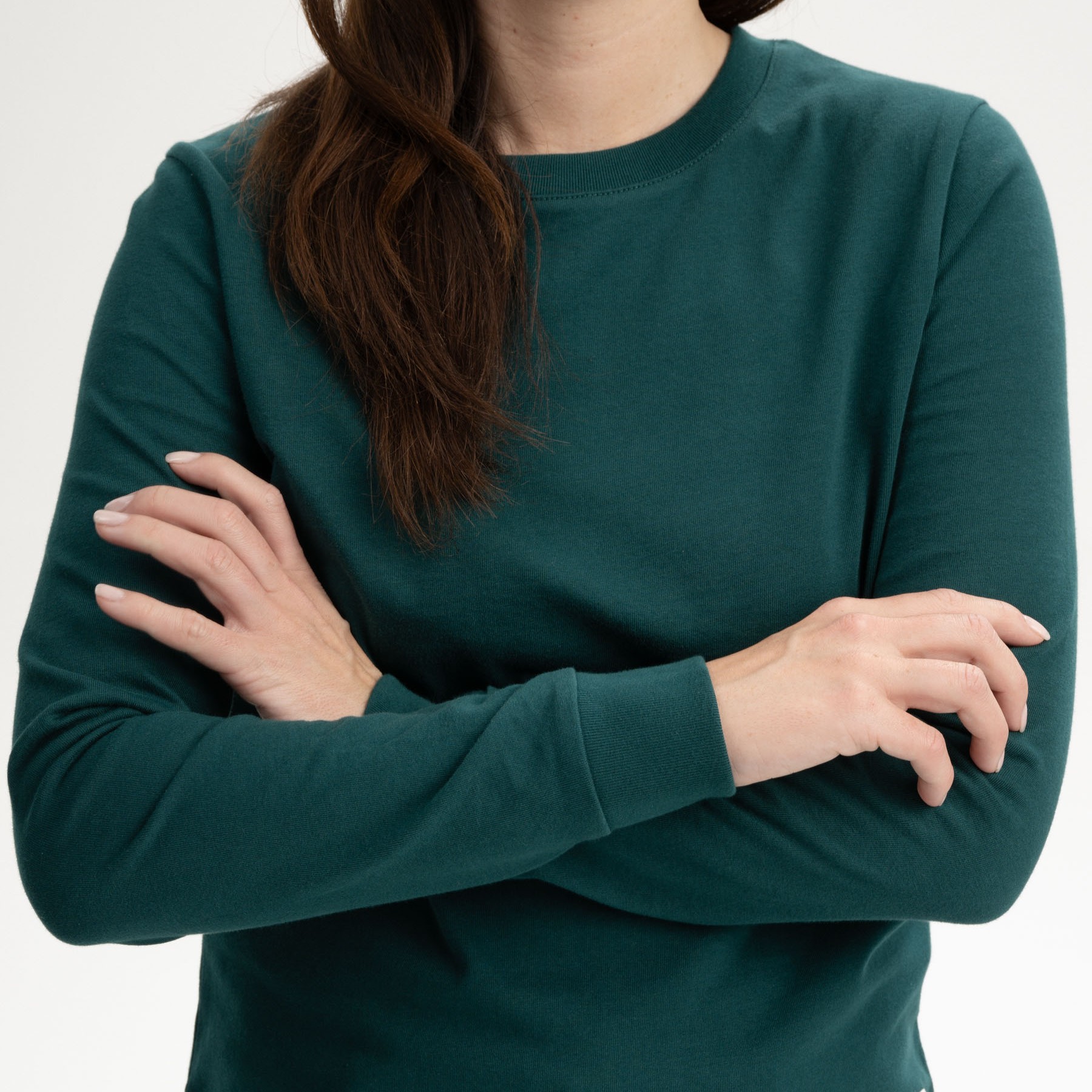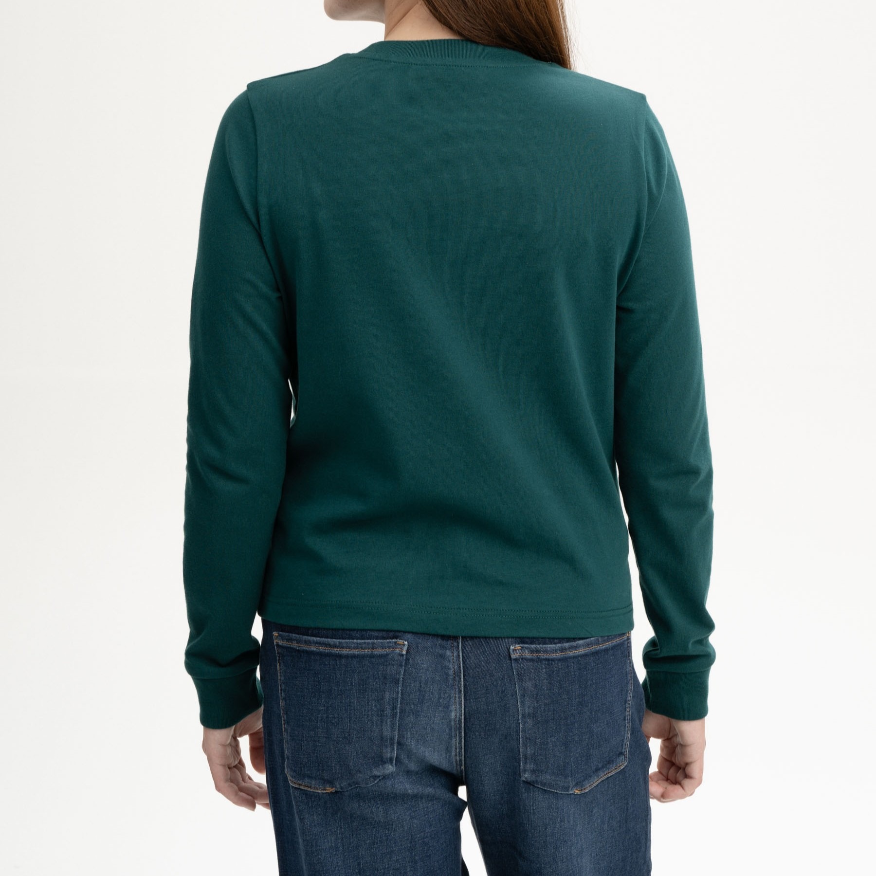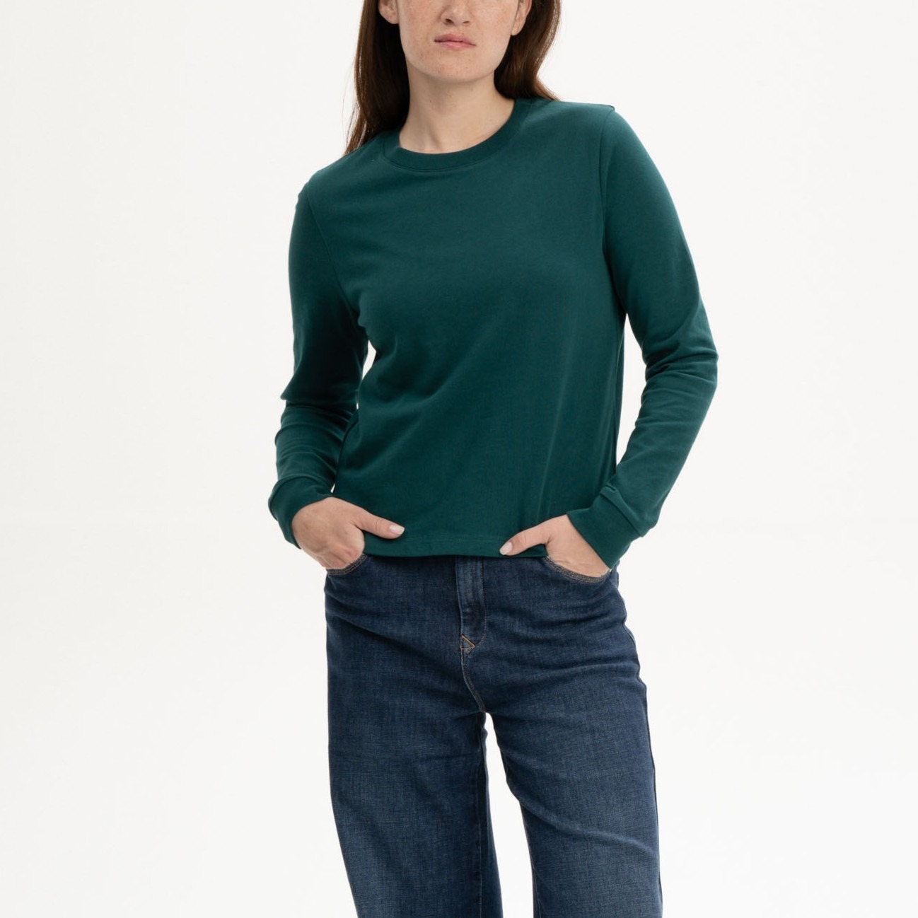Questa maglia a maniche lunghe in cotone biologico è un classico da abbinare molto facilmente con un jeans o un pantalone casual. La lavorazione del cotone pettinato rende il capo durevole nel tempo, morbido e liscio al tatto. La pesantezza è media, il giusto compromesso tra una maglia leggera ed una felpa.