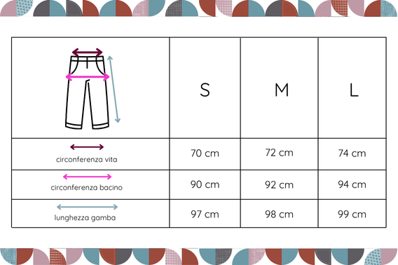 I pantaloni chino in velluto hanno una vestibilità leggermente piccola: ti consigliamo di scegliere la tua taglia abituale o, se sei indecisa tra due, una taglia in più.