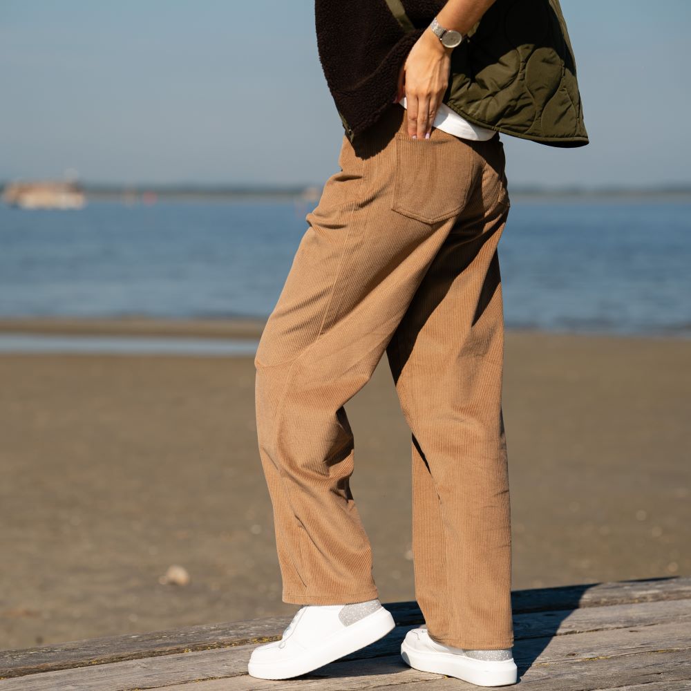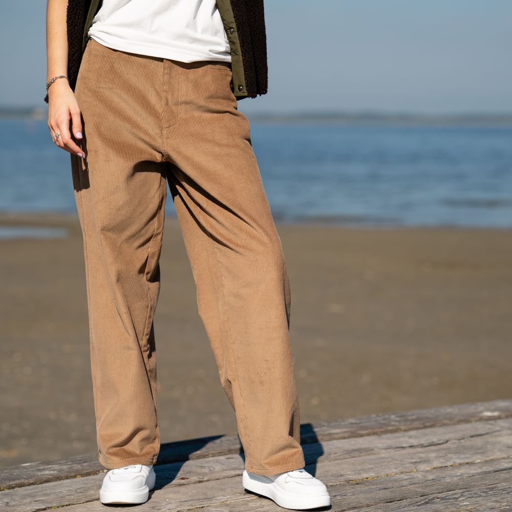 I pantaloni chino in velluto sono realizzati al 100% in cotone biologico. Presentano una gamba dritta e in vita sono dotati di passanti per la cintura, con una chiusura composta da cerniera e bottone. La lavorazione del velluto a coste dona eleganza e raffinatezza, rendendo questi pantaloni ideali sia per un look formale che per uno stile più casual. Il velluto è il tessuto invernale per eccellenza, grazie alla sua morbidezza al tatto e alle sue capacità isolanti, che offrono comfort e protezione contro il freddo.