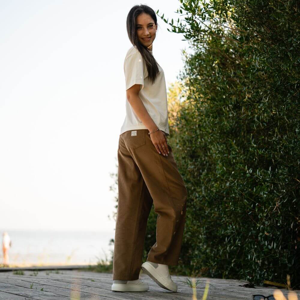 I pantaloni chino in velluto possono essere abbinati con un Girocollo in fibra di faggio e un Cardigan in cashmere rigenerato Edi. Oppure per un look più casual-chic abbinali con la Camicia con fiocco in cotone biologico. Ottimi sia in ufficio che in un contesto meno formale.