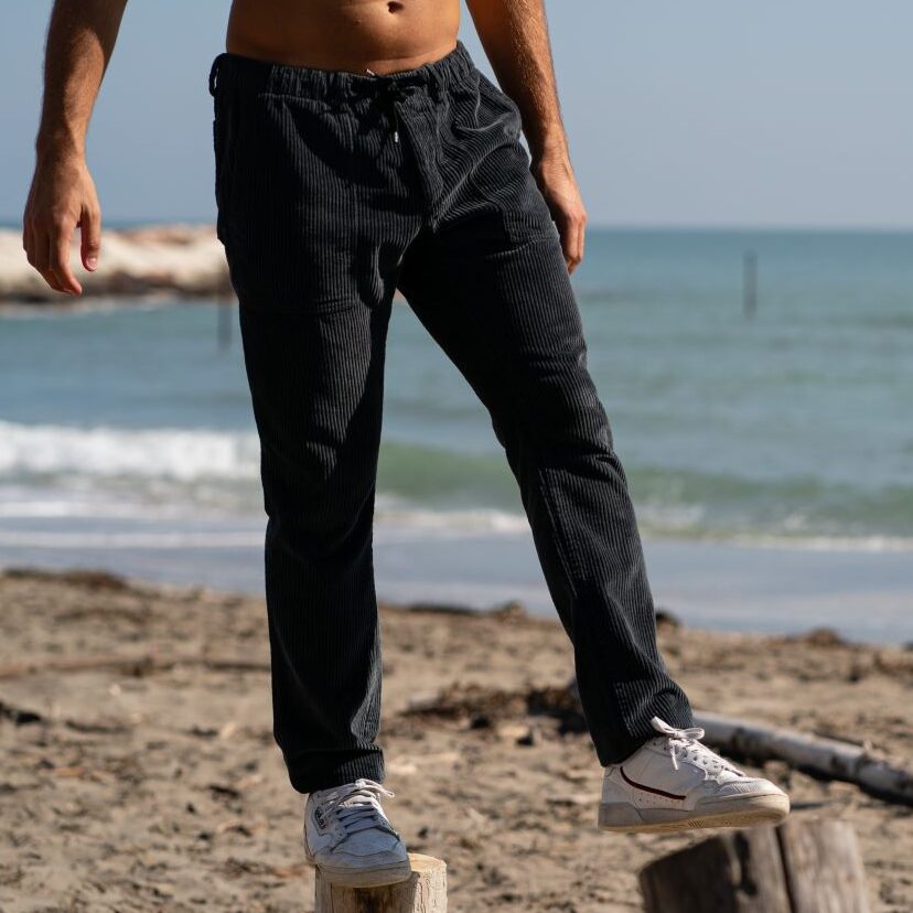 I pantaloni uomo in velluto sono realizzati in 100% cotone biologico e presentano una lavorazione del velluto a coste. Questo capo ha un taglio affusolato (modello tapered), con vita regular e gamba che si stringe sul fondo. Inoltre è caratterizzato da una coulisse in vita che permette di regolare la larghezza del pantalone.