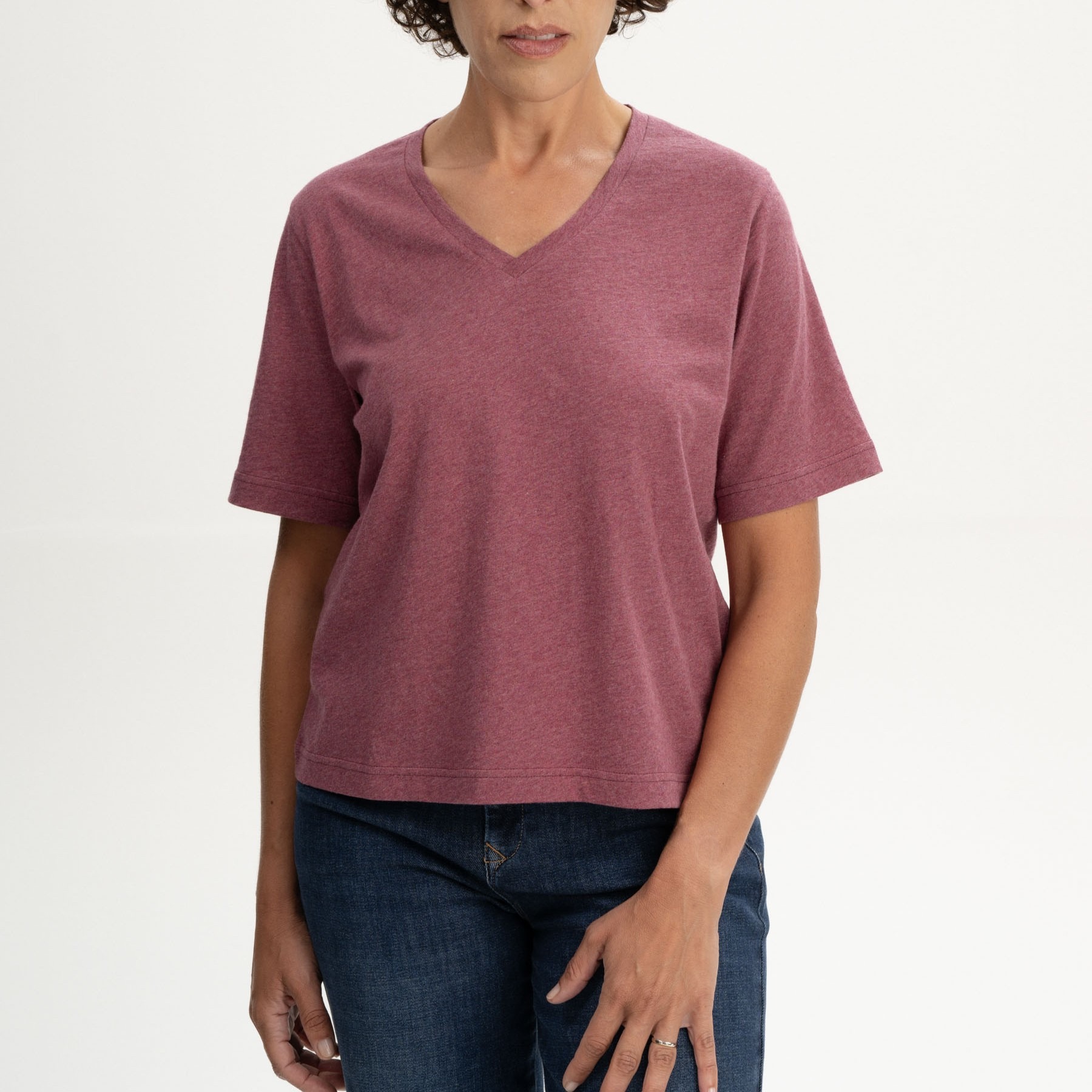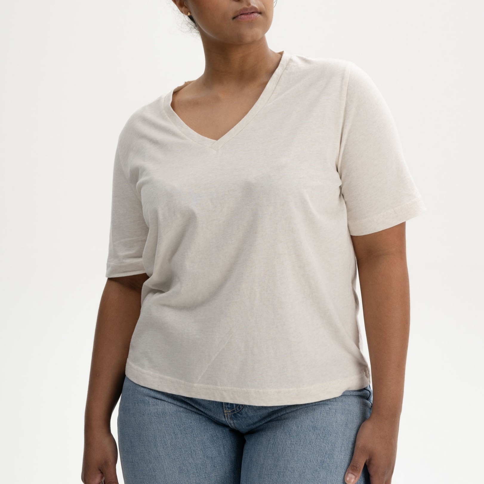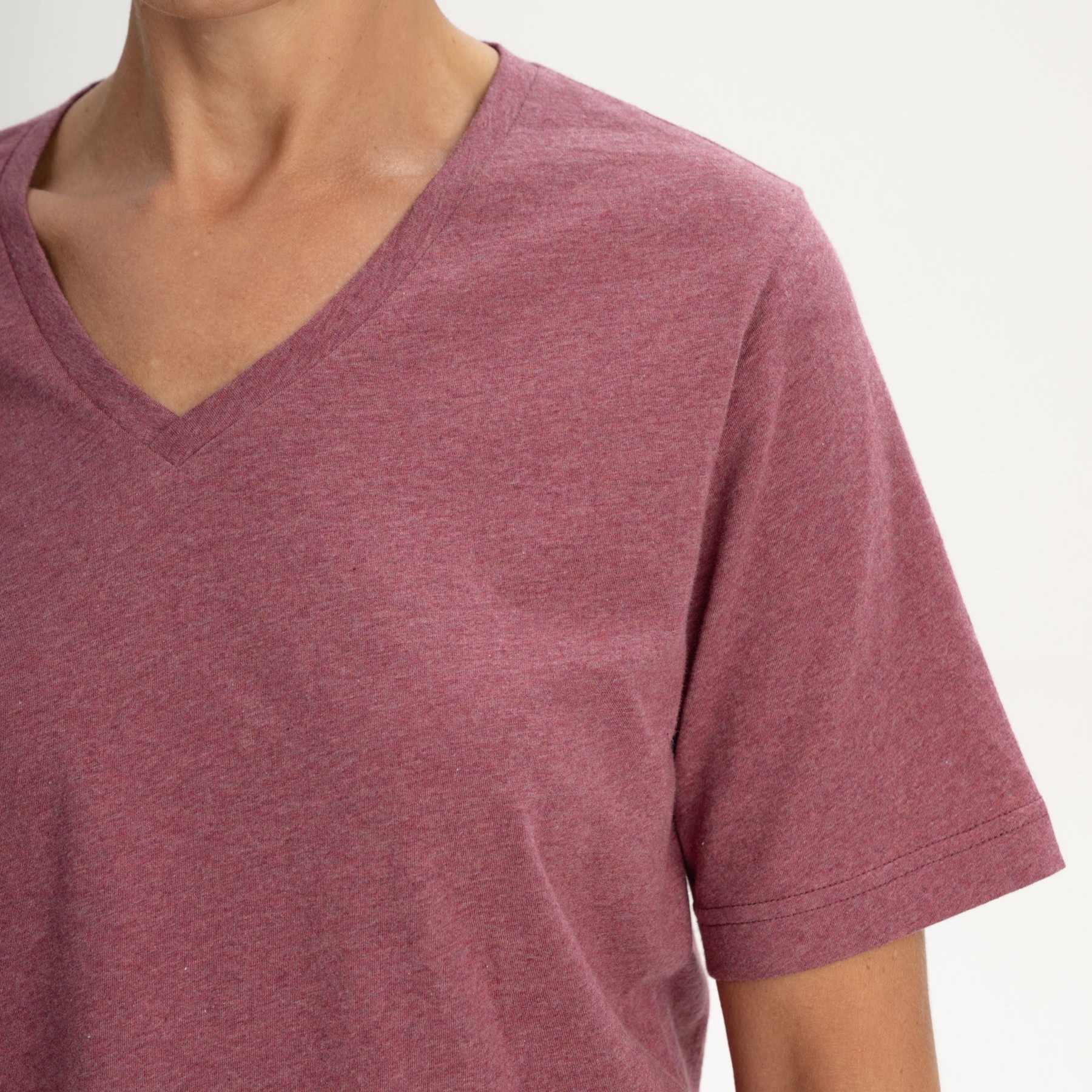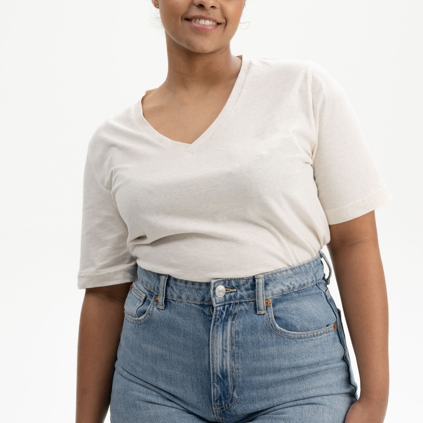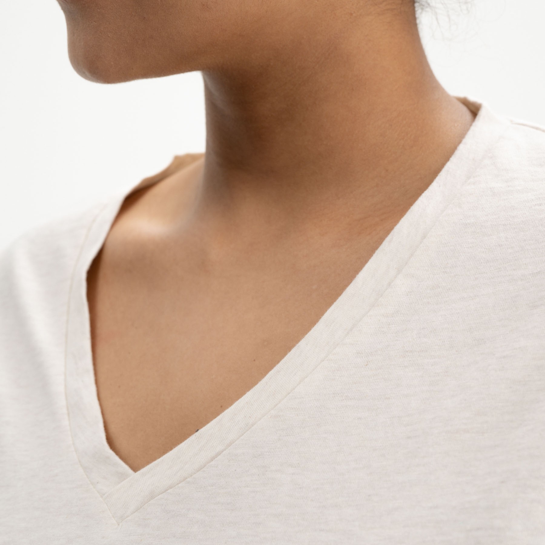 La t-shirt in cotone biologico presenta un taglio dritto e uno scollo a V con costine. Allo stesso tempo, risulta morbida e delicata sulla pelle. È realizzata interamente in cotone certificato Fairtrade, offrendo così elevata traspirabilità e comfort costante.